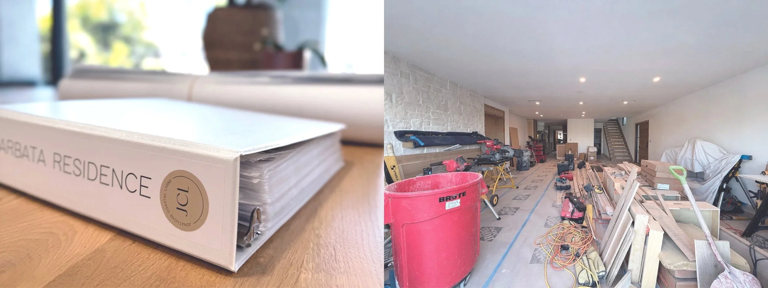 To keep everything grounded, we create a detailed spec binder—essentially the construction bible for the project. It’s what the GC, the client, and our team all reference to stay aligned when things inevitably get… dynamic. The juxtaposition is hard to miss: a clean, highly organized binder guiding its way through the chaos of a remodel.